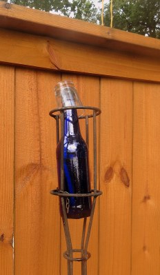 DIY – Bottle Tiki Torches – Beer bottle in stand (shot glass top)